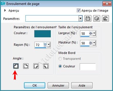 **Images/Effet d'images/Enroulement de page réglages suivants: couleur #127189