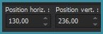 **Calques/Dupliquer Image/Redimensionner à 85%/décocher " Redimensionner tous les calques" **Activer l'outil sélecteur placer ces réglages X: 130 / Y: 236