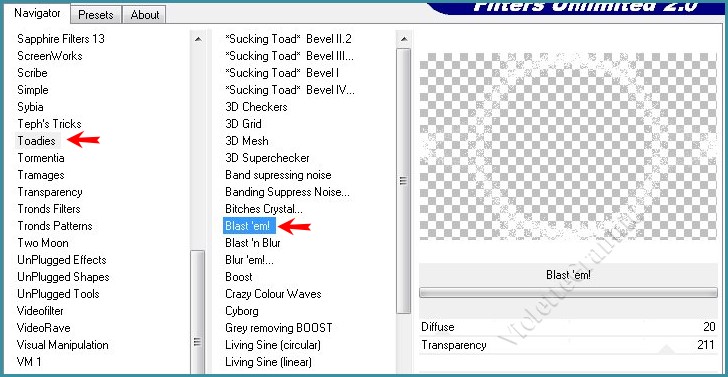 26 - Effets / Toadies / Blast réglages suivants : x-explosion : 20/ y- blast : 211