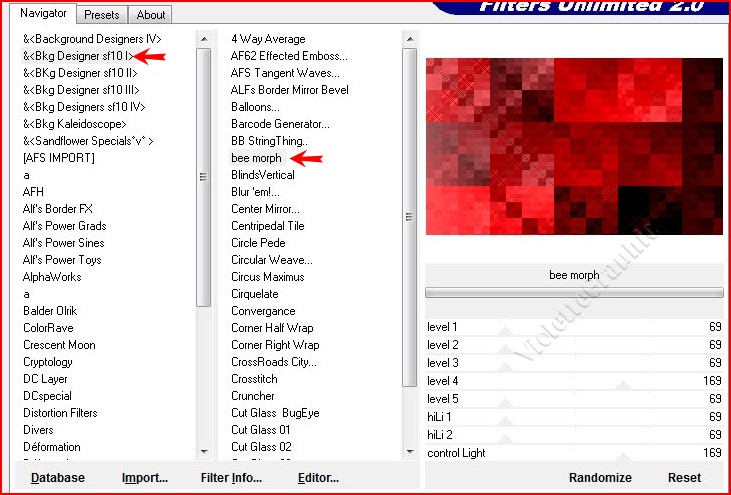 3 - Effets/&< BKG Designers sf10 I > bee morph réglages suivants :