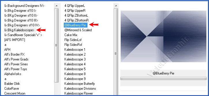 6 - Effets/ &<Bkg Kaleidoscope/ BlueBerry Pie réglages suivants :