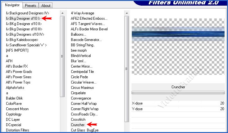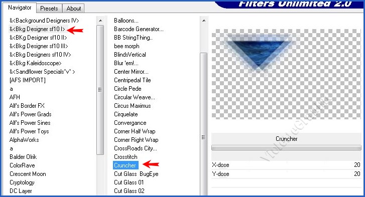 **Unlimited 2.0/ &<Bkg Designer sf101/ Cruncher réglages suivants :