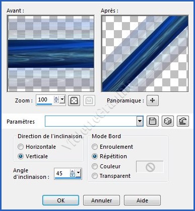 20 - Effets/Effets géométriques/inclinaison réglages suivants :