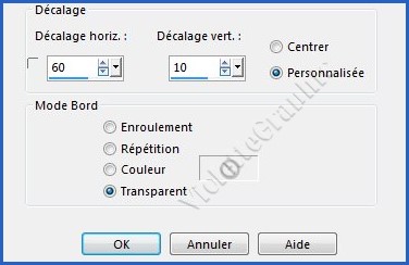 22 - Ouvrez le tube deco-2.pspimage Edition/Copier/Edition/Coller comme nouveau calque Effets/Effets d'image/Décalage réglages suivants :