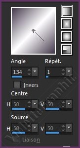 **Dans la Palette de Style Configurer un dégradé linéaire angle: 134°/Répétition: 1/Inverser non coché
