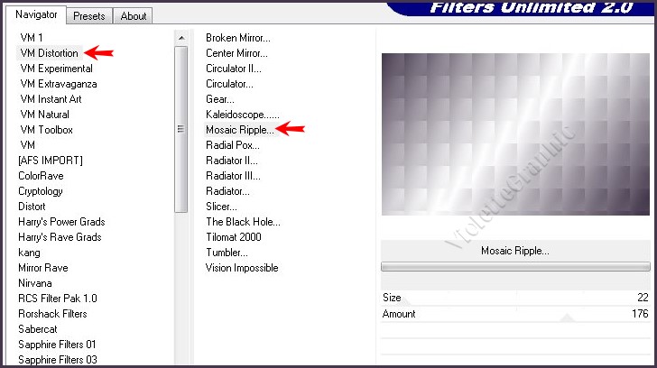 3 - Effets/Unlimitesd 2.0 VM Distortion _ Mosaic Ripple réglages suivants :