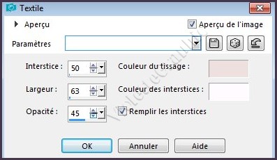13 - Effets/Effets de Textures/Textile réglages suivants : couleur #ece0de/couleur #ffffff