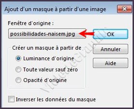 ** Activer le masque possibilidades_naisem.jpg Calques/Nouveau calque de masque/à partir d'une image/Ajout d'un masque à partir d'une image sélectionner le masque possibilidades_naisem.jpg