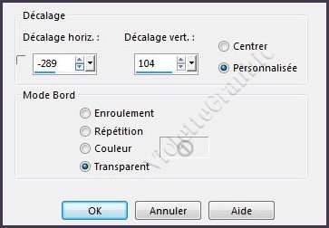 17 - Image/Redimensionner à 70%/décocher " Redimensionner tous les calques" 18 - Effets/Effets de bords/ Tracer les lignes19 - Effets/Effets d'image/Décalage réglages suivants :