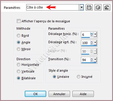 4 - Effets/Effets d'image/Mosaïque sans jointure réglages suivants : côte à côte
