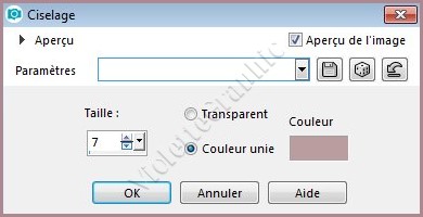 7 - Effets /Effets 3D/ciselage réglages suivants :