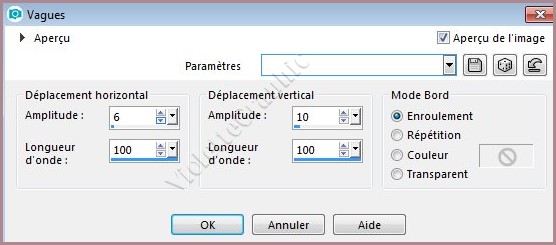 10 - Effets/Effets de Distorsion/Vagues réglages suivants :