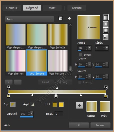 *** **Ouvrir les tubes , les dupliquer et fermer les originaux *** 1 - Placer en premier-plan la couleur #a78917 et en arrière-plan la couleur #a8a095