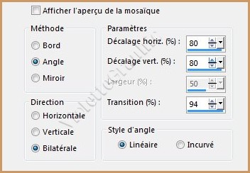 3 - Effets/Effets d'image/Mosaïque sans jointure réglages suivants :