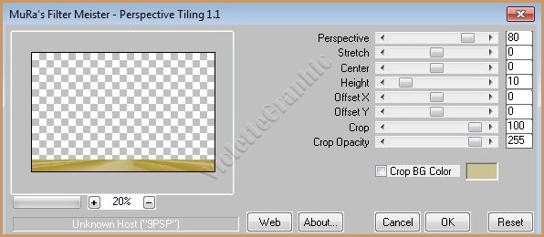 17 - Activer le calque 1 18 - Effets/Mura's Meister/Perspective Tiling réglages suivants :