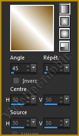15 - Remplir de dégradé formé des couleurs : premier-plan couleur #764b00/ arrière-plan couleur #ffffff configuré : linéaire/angle: 45°/Répétition: 1