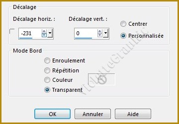 34 - Ouvrir le tube deco_you.pspimage Edition/Copier/Edition/ Coller comme nouveau calque **Effets/Effets d'image/Décalage réglages suivants :