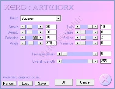 3 - Effets/Xero /Artwork *Squares* réglages suivants :