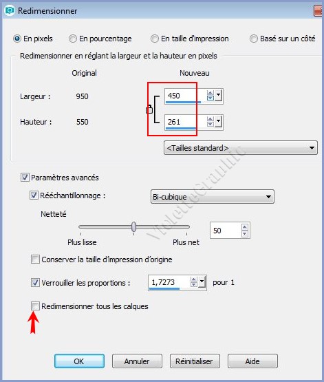 4 - Calques/Dupliquer 5 - Image/Redimensionner à 450 x 261 pixels/ décocher " Redimensionner tous les calques"