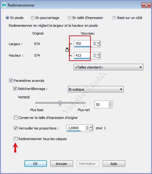 11 - Calques/Dupliquer ** Image/Redimensionner à 700 x 413 pixels/ décocher " Redimensionner tous les calques"