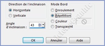 19 - Effets/Effets géométriques/inclinaison réglages suivants :