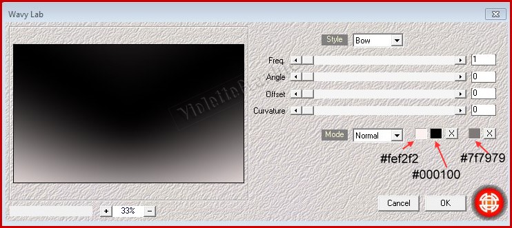 1 - Ouvrir une image transparente de 1000 x 600 pixels Effets/Mehdi/Wavy Labs réglages suivants :