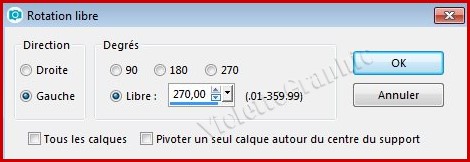 **Effets/Effets 3D/Ombre Portée : 0/0/100/100/couleur #000000**Image/Rotation libre de 270° à gauche