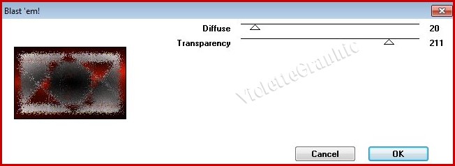 ** Activer l'imagem-love.jpg Edition/Copier/Edition/Coller dans la sélection Effets /Toadies/Blast 'em! réglages suivants: