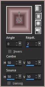 1 - Ouvrir une image transparente de 1000 x 800 pixels 2 - Remplir de dégradé rectangulaire/ angle=0/répétitions : 2/ inverser non coché