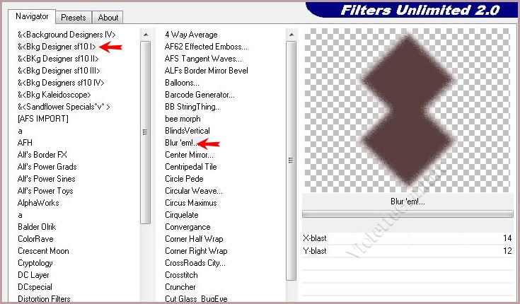 **Effets/ &<Bkg Designers sf10 I>Blur'eml.. réglages suivants :