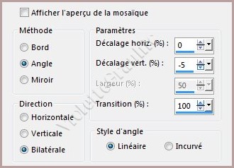 **Effets/Effets d'image/Mosaïque sans jointure réglages suivants :