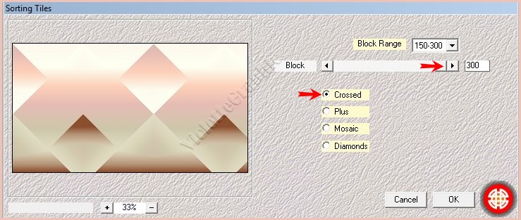 ** Effets/Medhi/Sorting Tiles réglages suivants :