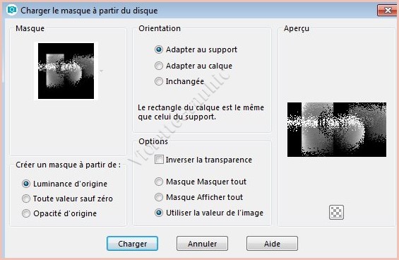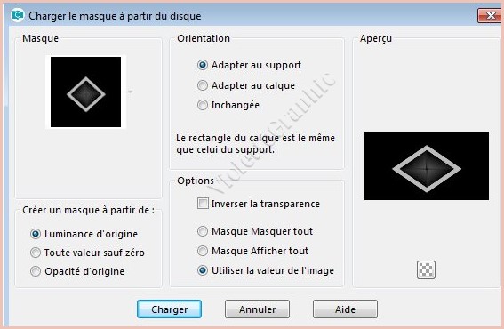 **Activer le masque @naisem.PspMask Calques/Nouveau calque de masque/à partir d'une image/Ajout d'un masque à partir du disque sélectionner le masque @naisem.PspMask