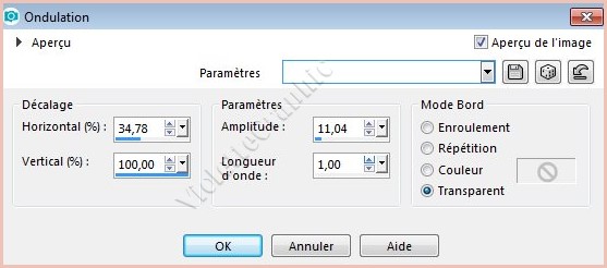 9 - Effets/Effets de Distorsion/Ondulation réglages suivants :