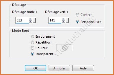 7 - Activer le tube nmcriacoes_094.pspimage Edition/Copier/Edition/Coller comme nouveau calque Image/Miroir/Miroir horizontal Effets/Effets d'image/Décalage réglages suivants :