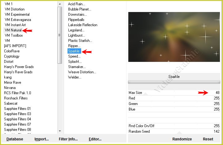 13 - Activer le calque 1 ** Effets/VM Natural/Sparkle réglages suivants: