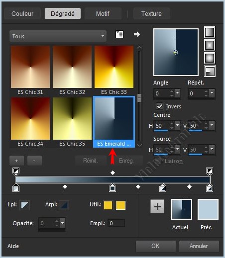 **Dans la Palette de Style Configurer le dégradé ES Emerald Dragon 30 comme ci-dessous: