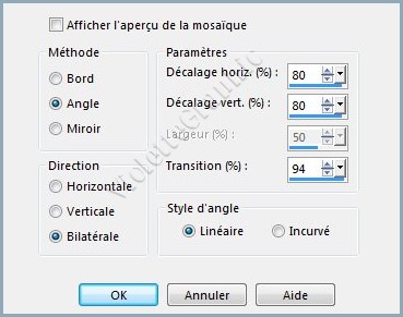 3 - Effets/Effets d'image/Mosaïque sans jointure réglages suivants :