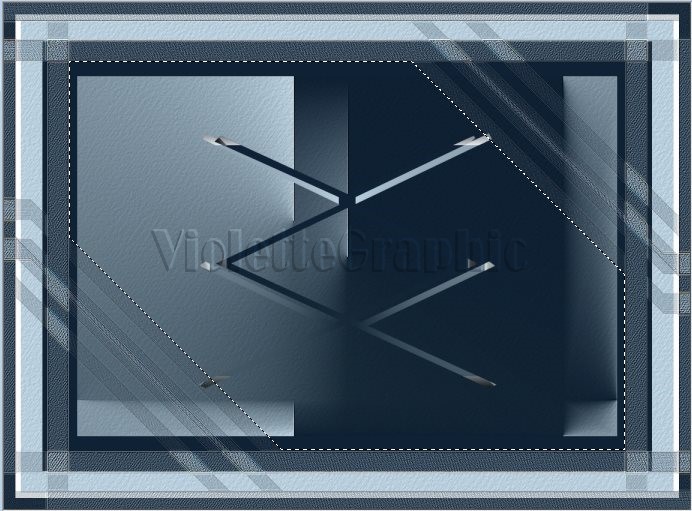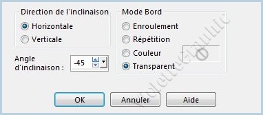 9 - A l'aide de la baguette magique sélectionner le cadre de 36 pixels **Appliquer la même texture qu'au n° 4 **Sélection/Transformer la sélection en calque **Effets/Effets géométriques/ inclinaison réglages suivants :