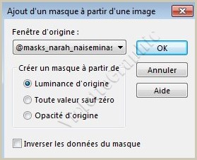 ** Activer le masque @masks_narah_naiseminas.PspMask Calques/Nouveau calque de masque/à partir d'une image/Ajout d'un masque à partir d'une image sélectionner le masque @masks_narah_naiseminas.PspMask