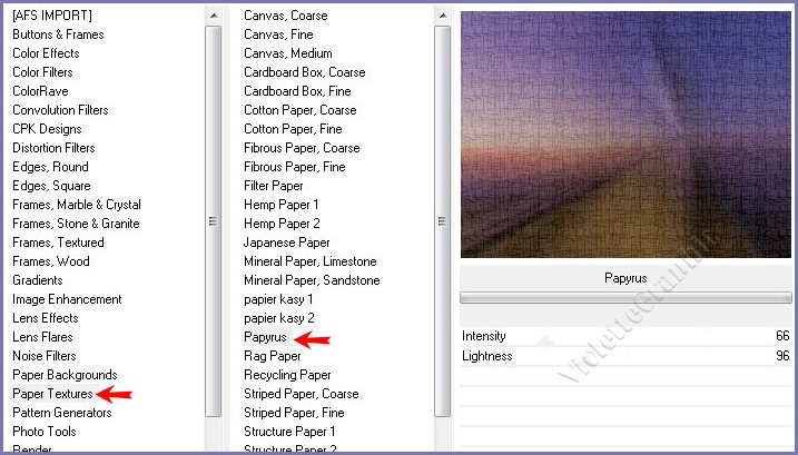 3 - Effets/Unlimited/Paper texture/Papyrus réglages suivants :
