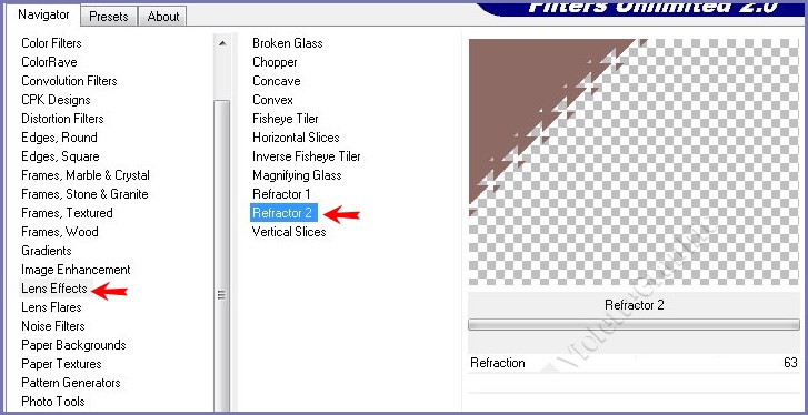 **Effets/Unlimited/ Lens Effects_Refrator 2 réglages suivants :