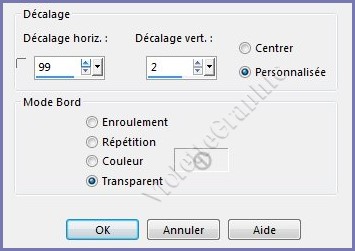 7 - Activer le tube decor_nmcriacoes_95.pspimage Edition/Copier/Edition/Coller comme nouveau calque Image/Miroir/Miroir horizontal **Effets/Effets d'image/Décalage réglages suivants :