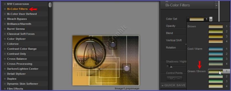 12 - Calques/Fusionner les calques visibles13 - Effets/ Nick Software/ Color Efex 3.0 /Grenn/Brown: 1