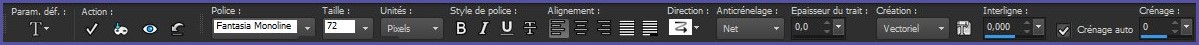 18 - Activer l'outil Texte/Police Fantasia Monoline/taille : 720/vectoriel premier-plan fermé /couleur arrière-plan #000000
