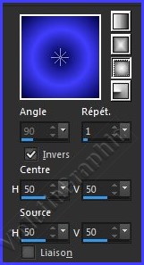 **Configurer un dégradé linéaire angle: 90°/Répétition: 1/Inverser coché