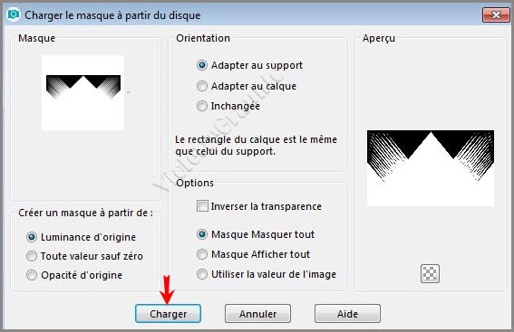 1 - Ouvrir une image transparente de 1000 x 600 pixels 2 - Remplir de couleur de premier-plan 3 -Activer le masque Mask_Wood15 .jpg Calques/Nouveau calque de masque/à partir d'une image/Ajout d'un masque à partir d'une image sélectionner le masque Mask_Wood15 .jpg