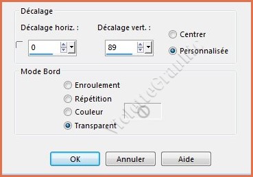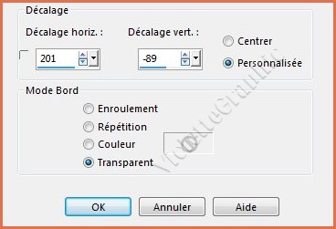 13 - Activer le tube text-1.pspimage Edition/Copier/Edition/Coller comme nouveau calque Image/Redimensionner à 60%/décocher " Redimensionner tous les calques" **Effets/Effets d'image/Décalage réglages suivants :