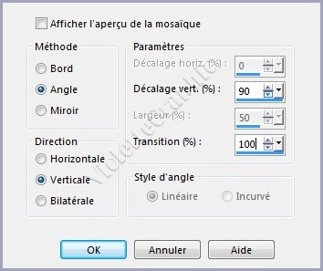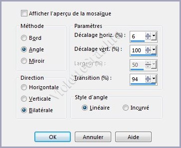 5 - Effets/Effets d'image/Mosaïque sans jointure réglages côte à côte réglages suivants :