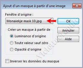 ** Activer le masque moneijak 10 .jpg Calques/Nouveau calque de masque/à partir d'une image/Ajout d'un masque à partir d'une image sélectionner le masque moneijak 10 .jpg